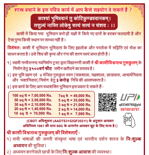 (1) to spread the light of Dev Bhasha (Sanskrit language) among the new-age students;